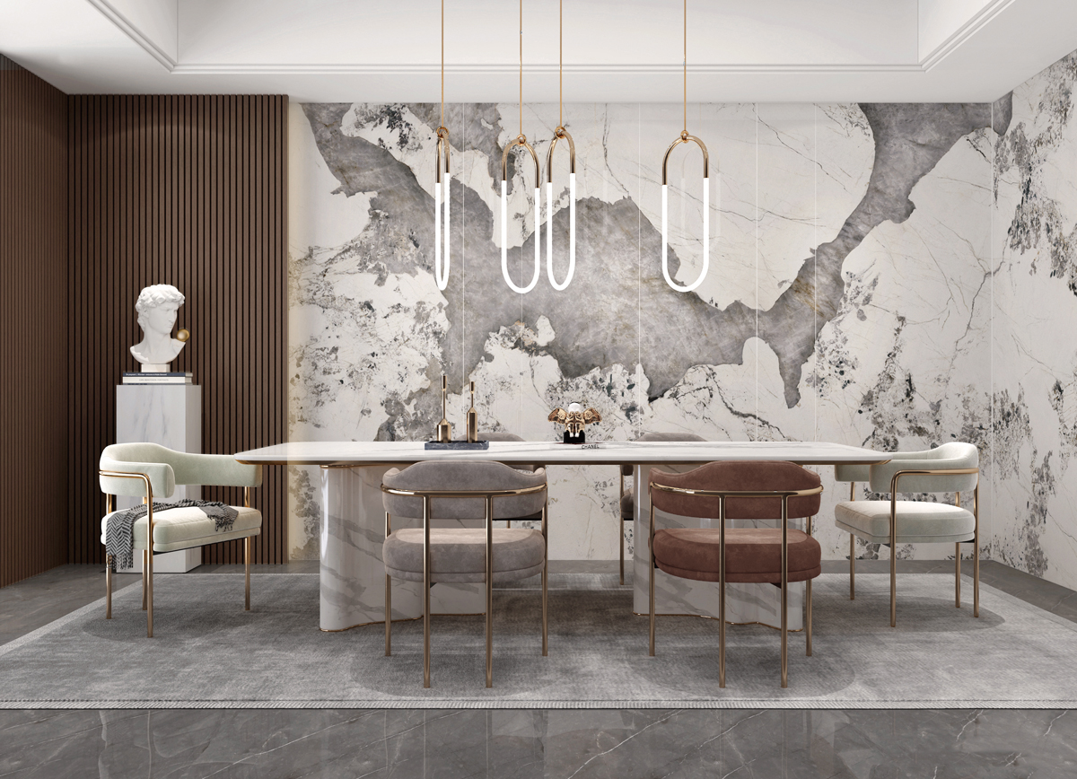 隨著工藝不斷進步,尤其是歐洲進口板磚所採用的數位噴墨技術,能在板磚表面呈現出高解析度的紋理與圖案,從細緻的大理石紋理到藝術花卉,幾乎可以完美模擬各種天然或人造材料的質感。相比天然石材需要靠「運氣」挑選花紋,且價格昂貴,反之大板磚在輸出供應上則更具彈性與穩定性。